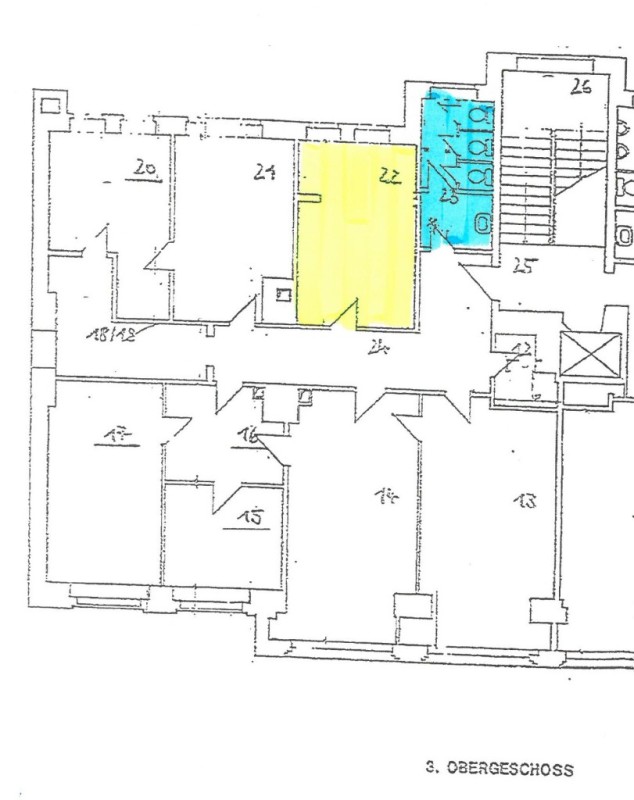 Küche, WC und Flur teilt man sich mit den Büromietern der Etagenhälfte.