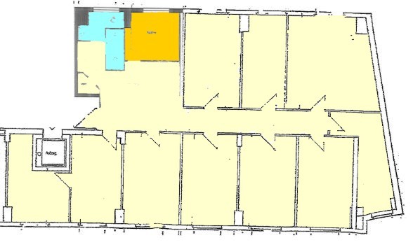 Die Bürofläche besteht aus 9 Räumen, ein WC- und Küchenbereich wird unter Absprache mit dem Vermieter neu einbaut.
