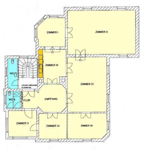 Die Mietfläche verfügt über 7 Büroräume und zwei WC-Bereich.