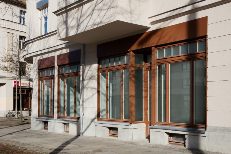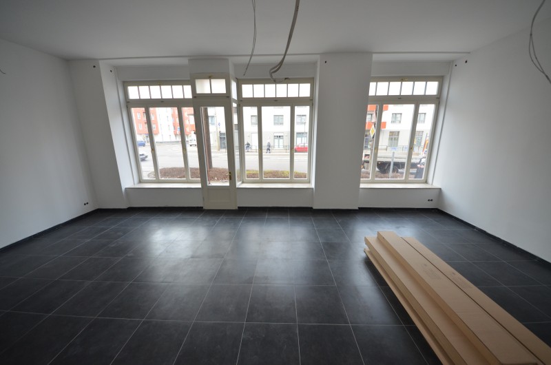Die Gewerbefläche verfügt über große Schaufenster, einen großen Ladenbereich und einen Büroraum mit Zugang zum Balkon.