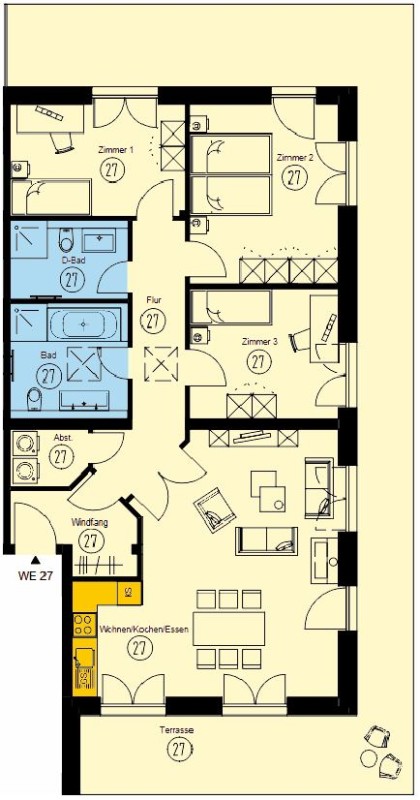DAS VORSTEHENDE ANGEBOT IST FREIBLEIBEND UND DIE ZWISCHENZEITLICHE VERMIETUNG SOWIE ÄNDERUNGEN UND IRRTÜMER BLEIBEN VORBEHALTEN! ETWAIGE EINZEICHNUNGEN IN DEN GRUNDRISSPLÄNEN (KÜCHEN, WASCHMASCHINE, MÖBEL ETC.), SIND LEDIGLICH EINRICHTUNGSVORSCHLÄGE UND SIND NICHT MIETVERTRAGSBESTANDTEIL.