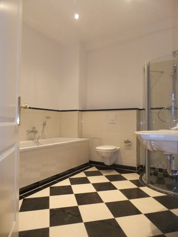 Das Bad verfügt über eine Badewanne sowie eine Dusche.