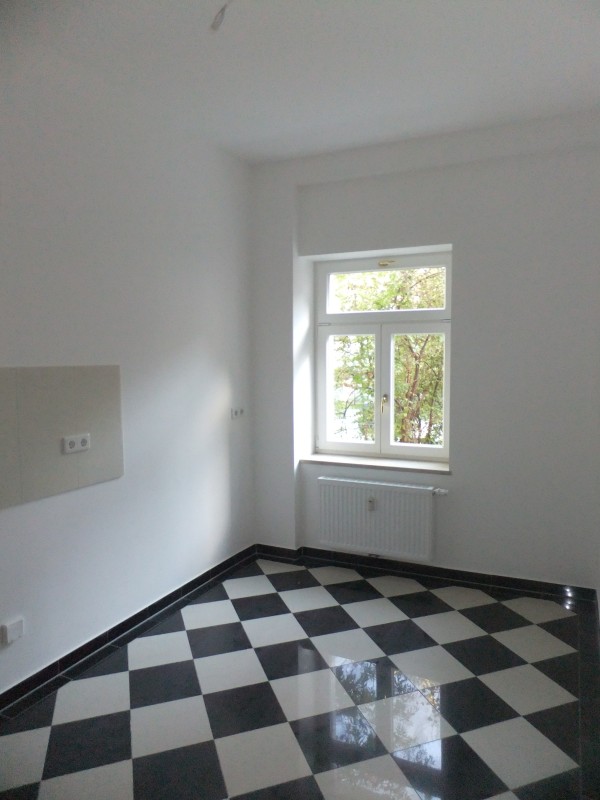 Die sanierte Wohnung verfügt über Parkettboden in den Wohnräumen, eine separate Küche und einen Balkon.