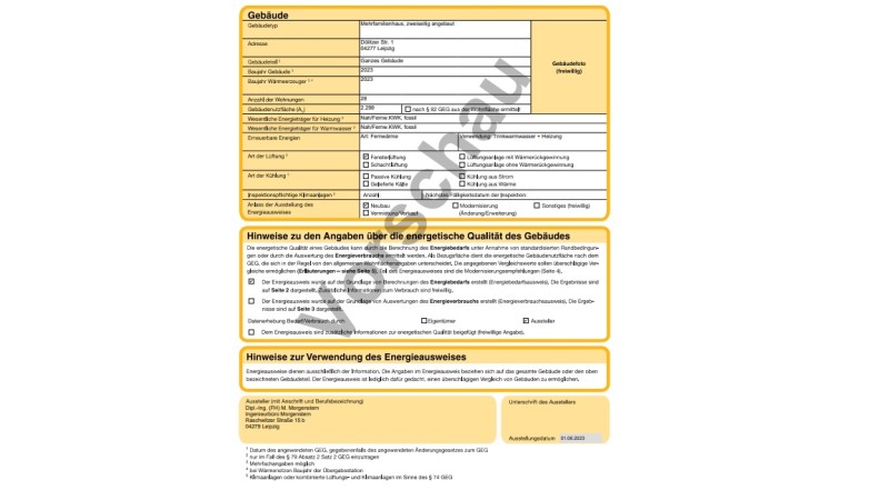 Es handelt sich hier um einen vorläufigen Energieausweis, der nach Fertigstellung durch einen Aktualisierten ersetzt wird.