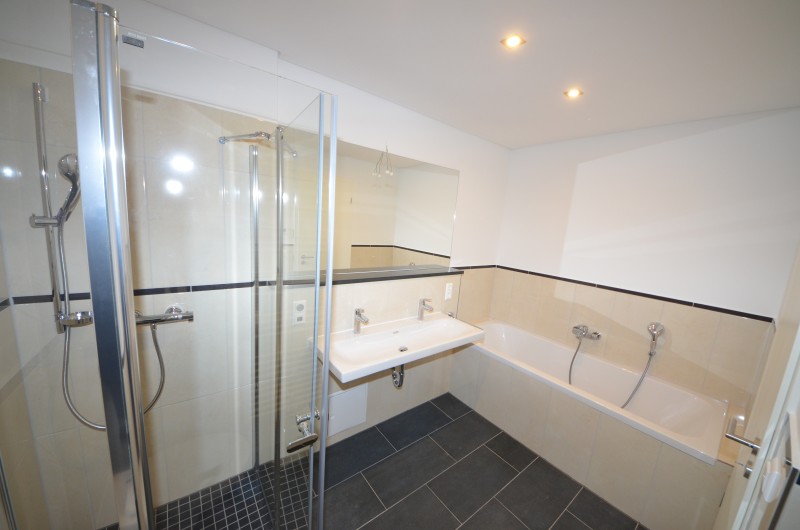 Zur erstklassigen Ausstattung dieser Wohnung zählen: eine Loggia, Parkettfußböden in den Wohnräumen, Fußbodenheizung, Abstellraum, ein modernes Bad mit Kristallspiegel, Wanne, ebenerdiger Dusche und Deckenstrahlern, Gäste WC.