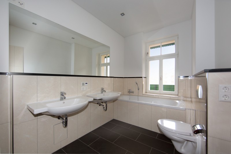 - zwei moderne Bäder mit Kristallspiegel, Downlights, Badradio, Badewanne und ebenerdiger Dusche