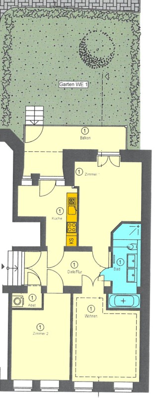 - einen Balkon mit Gartenanteil