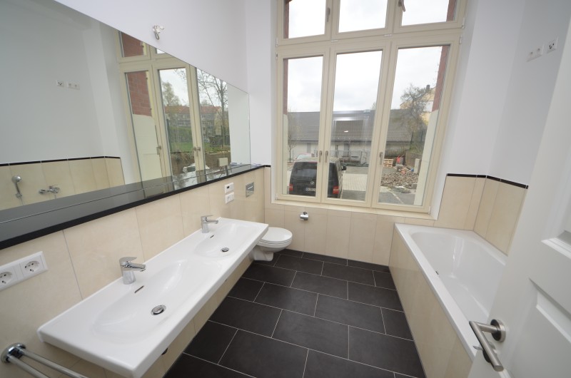 - zwei moderne Bäder mit Kristallspiegel, Downlights, Badradio, Badewanne und ebenerdiger Dusche