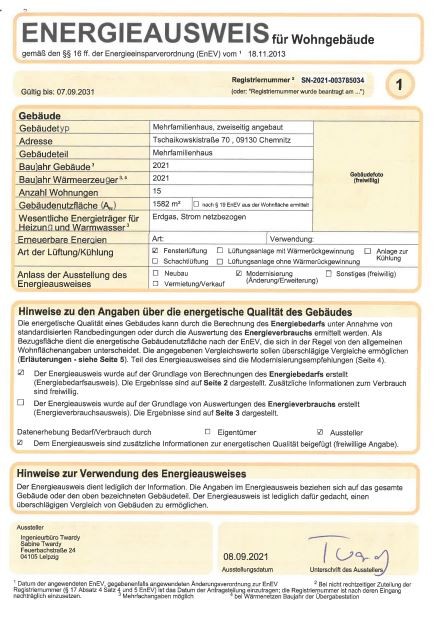 Es handelt sich um einen denkmalgeschützten Altbau, ein Energieausweis ist nicht erforderlich !