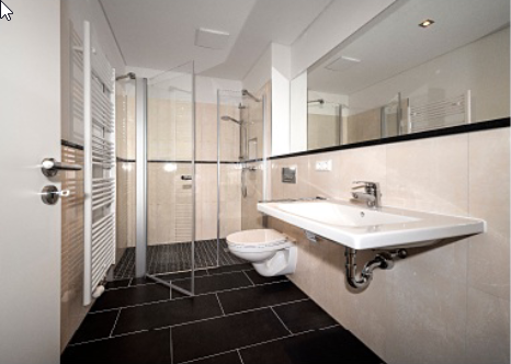 - 2 moderne Bäder mit Kristallspiegel, Downlights, Badradio, Badewanne und/oder ebenerdiger Dusche
