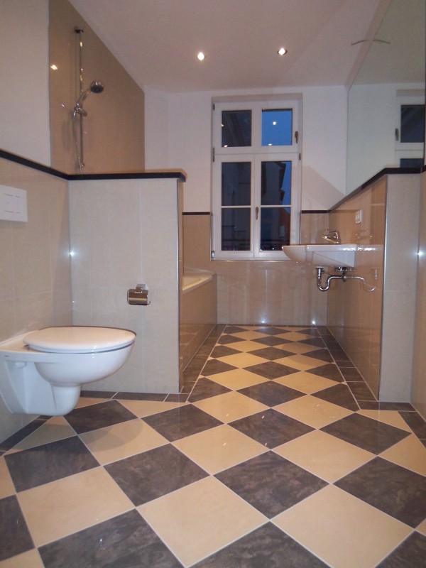 - modernes Tageslichtbad mit Badewanne und Dusche