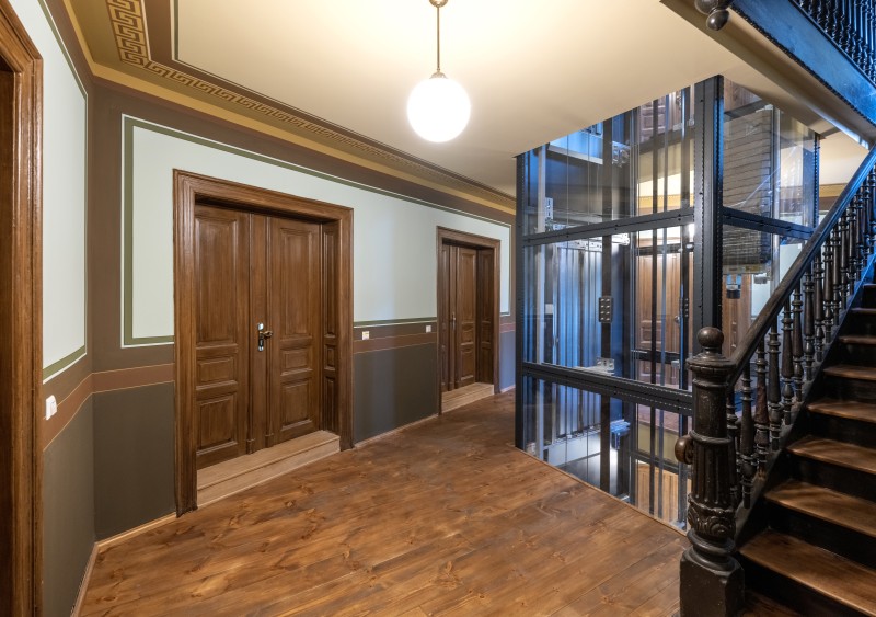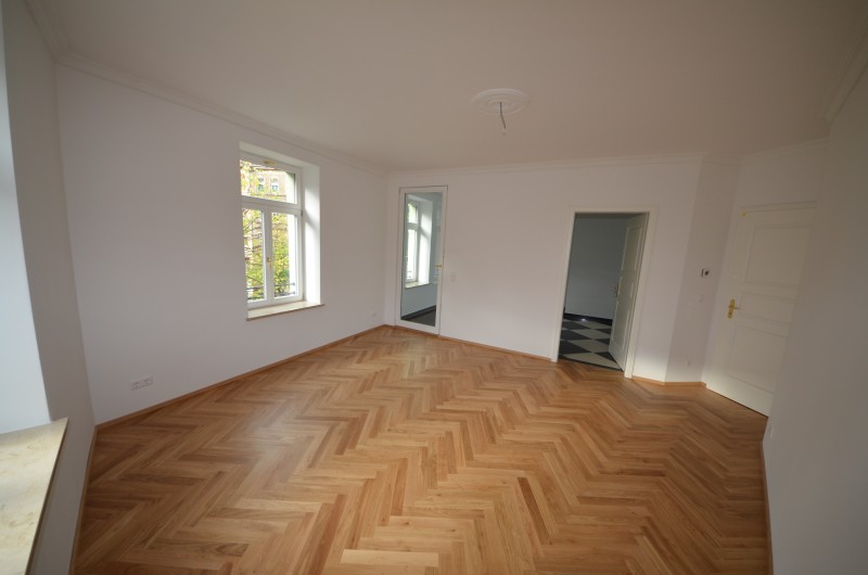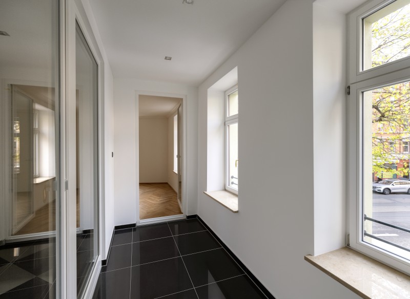 Der denkmalgeschützte Altbau wurde komplett saniert und bietet Raum für 3 Gewerbeeinheiten im Erdgeschoß und 19 Wohnungen. Erbaut wurde das Gebäude ca. 1890.