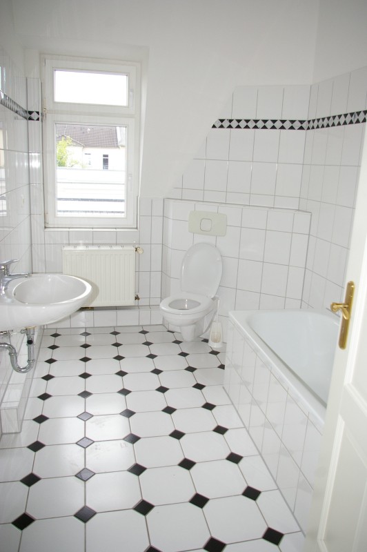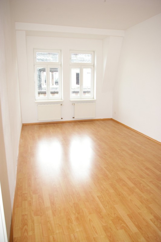 Die helle Dachgeschosswohnung verfügt über ein Tageslichtbad mit Wanne, einen Balkon zum Innenhof und Laminatboden.