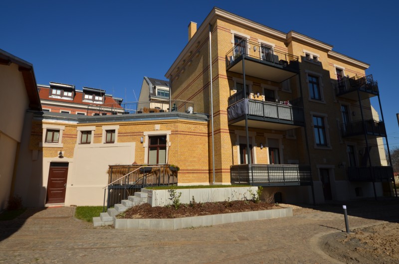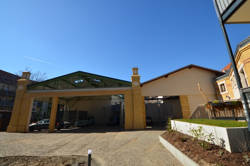 Das Haupt- und Eckgebäude wurden um 1897/98 für die Leipziger Elektrische Straßenbahn Gesellschaft als Straßenbahndepot mit Wohn- und Verwaltungsgebäude errichtet. Nach Sanierung wird das Objekt über insgesamt 19 Wohnungen verfügen, wovon 12 im Haupt- und 7 im Eckgebäude liegen. Die Arbeiten am Objekt erfolgen in ständiger Abstimmung mit dem Denkmalschutz.