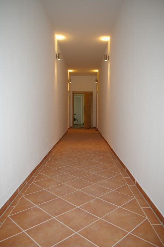 Die kleinen Appartements sind mit einem modernen Bad mit Dusche, einer kleinen Einbauküche und hellem Laminatfußboden ausgestattet.