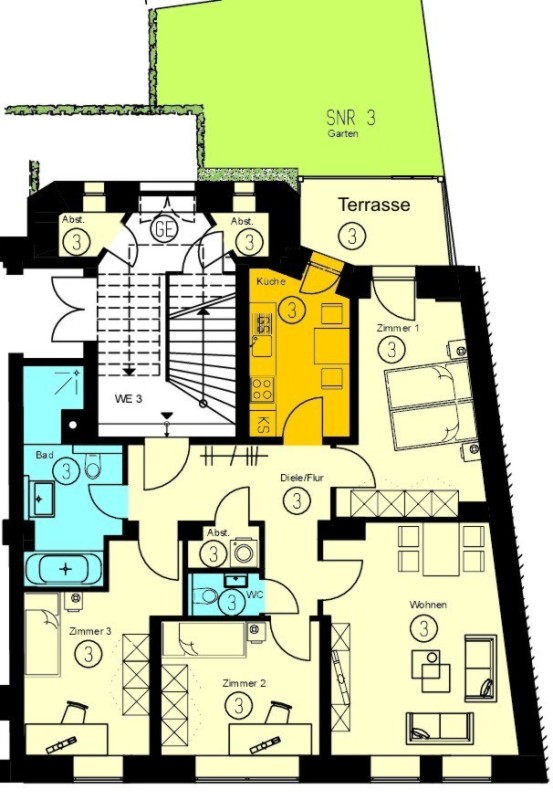 Zur erstklassigen Ausstattung dieser Wohnung im Erdgeschoss zählen :
