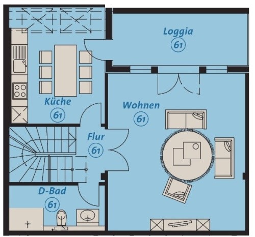 - ein Abstellraum mit Anschluß für die Waschmaschine
