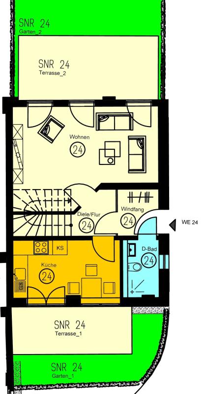 Zur erstklassigen Ausstattung dieser Wohnung (EG+DG) zählen :